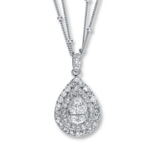 Diamond Heart Necklace 1/2 ct tw Round & Baguette 10K Yellow Gold 18″