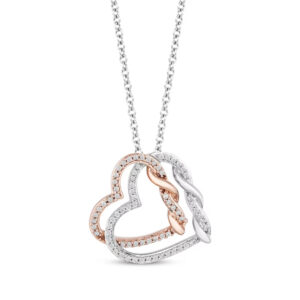 “Mommy” is decorated with sparkling round diamonds and a heart in this adorable necklace for her. Crafted of sterling silver, the 17-inch necklace has a total diamond weight of 1/6 carat. The cable chain fastens with a lobster clasp.