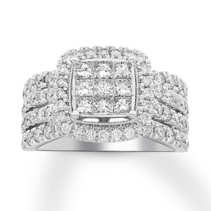 Diamond Engagement Ring 2 ct tw Princess/Round 10K White Gold